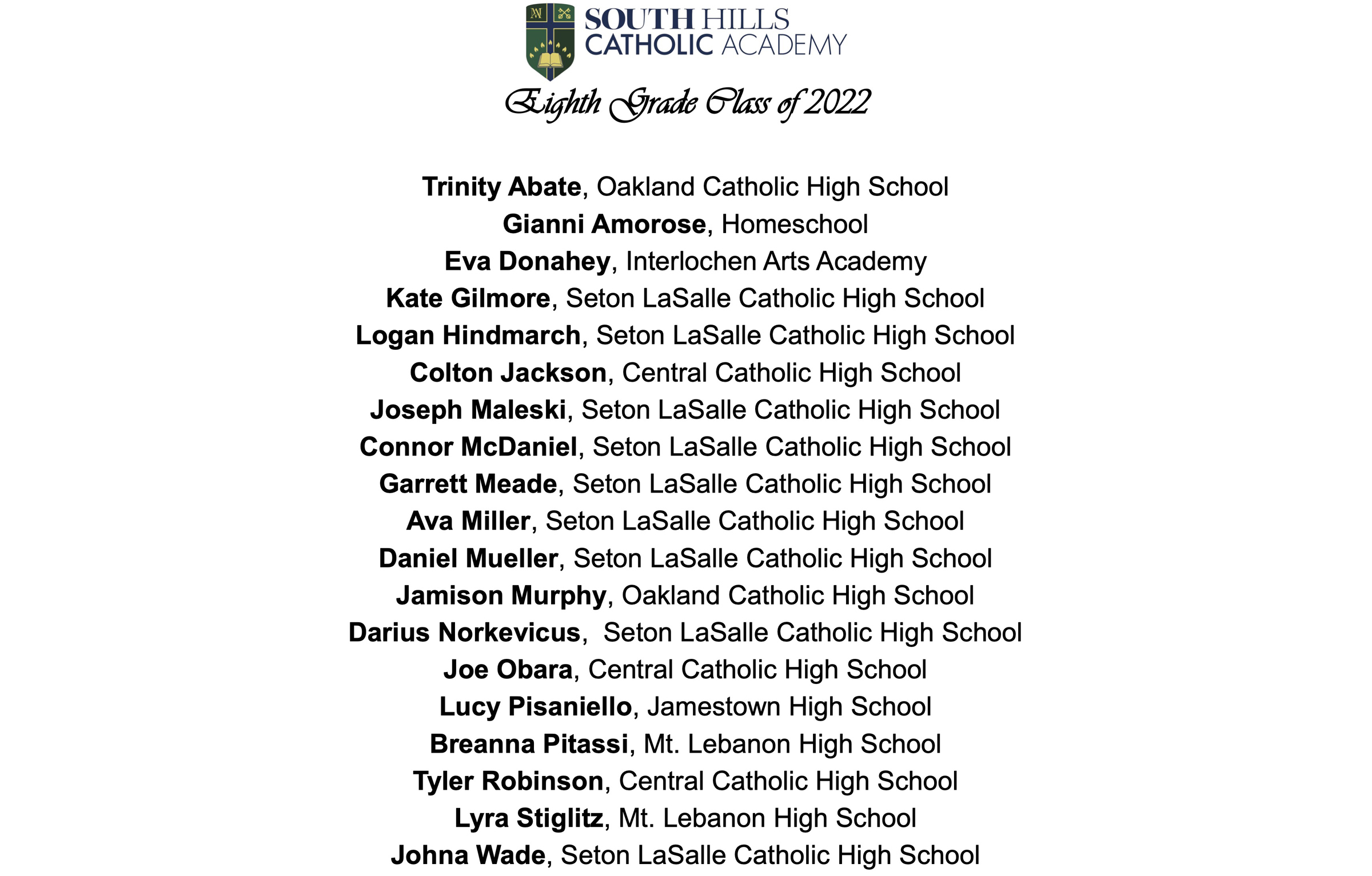 Toggle Navigation South Hills Catholic Academy Uniform Information Calendar Schedule Menus News Etc About A Message From Our Head Of School Board Of Directors Employment Opportunities Mask Vaccination And Covid 19 Policy